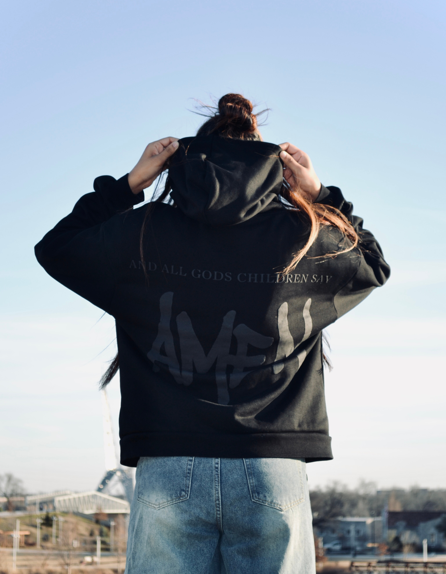 THE ONE WAY APPAREL BLACK “AMEN” HOODIE IS A DECLARATION OF FAITH, PURPOSE, AND BOLD CHRISTIAN STREETWEAR. INSPIRED BY PSALM 106:47–48, IT’S ROOTED IN A PRAYER FOR DELIVERANCE AND ENDS WITH THE POWERFUL CALL: “LET ALL THE PEOPLE SAY, AMEN!” CRAFTED FROM 600 GSM HEAVYWEIGHT FLEECE COTTON, THIS PIECE DELIVERS PREMIUM STRUCTURE, WARMTH, AND DURABILITY WITH AN OVERSIZED, RELAXED FIT FOR MODERN STREETWEAR.